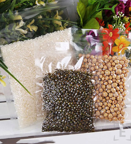 Empaques realizados con las películas específicas para resistir el proceso de empacado al vacío, con sellado ancho para mayor resistencia.